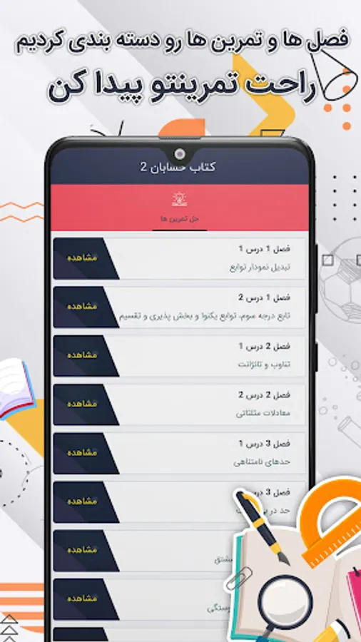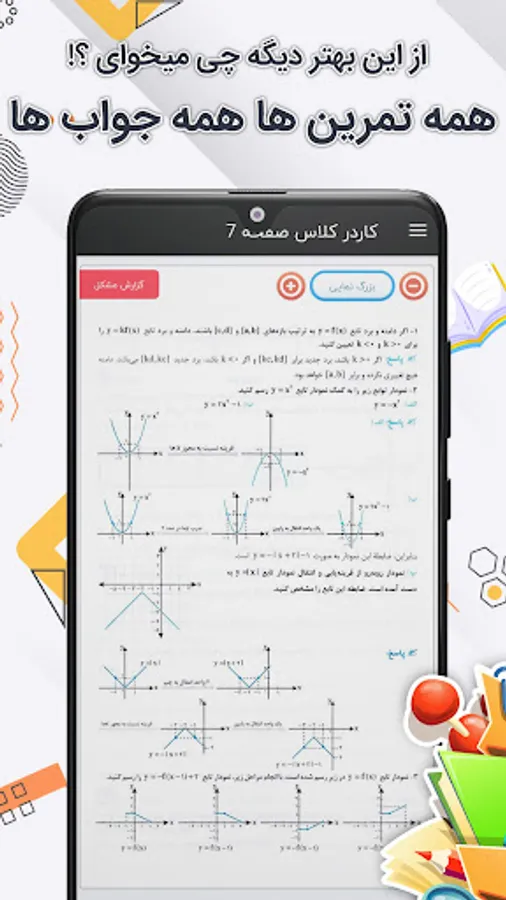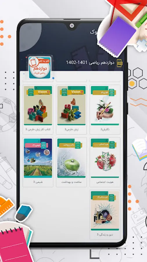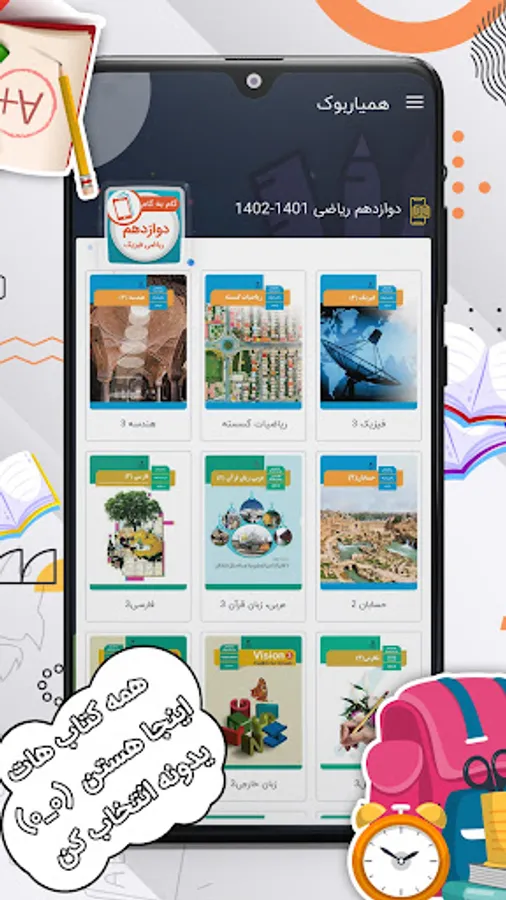 In this version of the Hamyarbook program, we have put solutions to all the exercises, activities, problems, self-tests, experiments, think, text questions, the meaning of the lesson and everything that needs to be answered in the 12th grade mathematics and physics textbooks for you. Don't worry about answering any question.