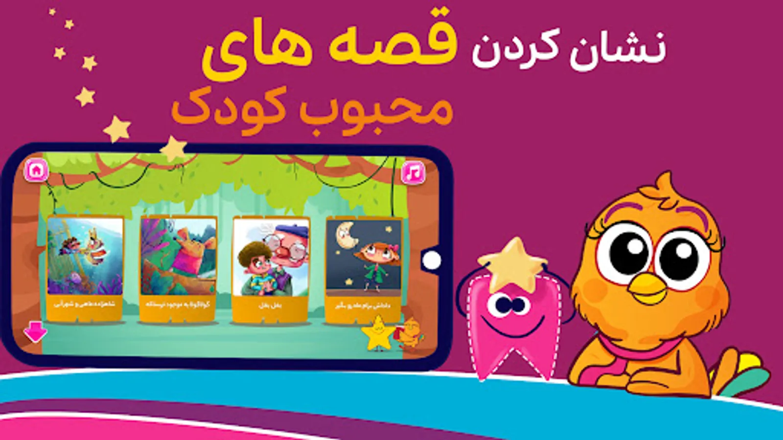 کافیست با دانلود اپلیکیشن و ثبتنام بهصورت رایگان، برای کودک خود قصههای تازه و دلنشین پخش کنید.