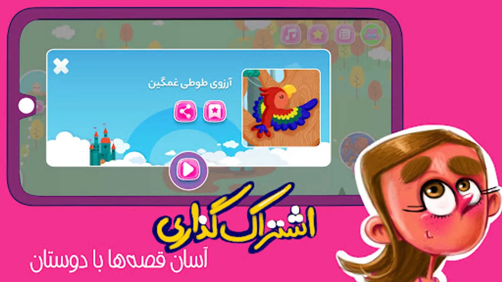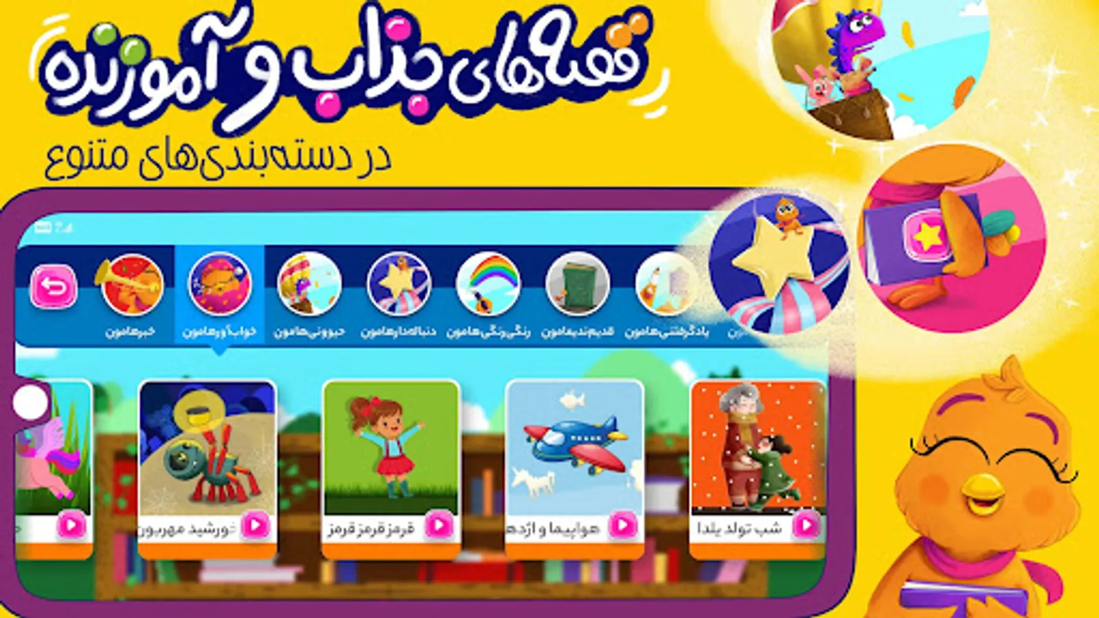The storytelling Application, Parandeh (meaning bird), has come to take the children to the sky of dreams and imaginations and to tell them a thousand colorful and instructive stories.