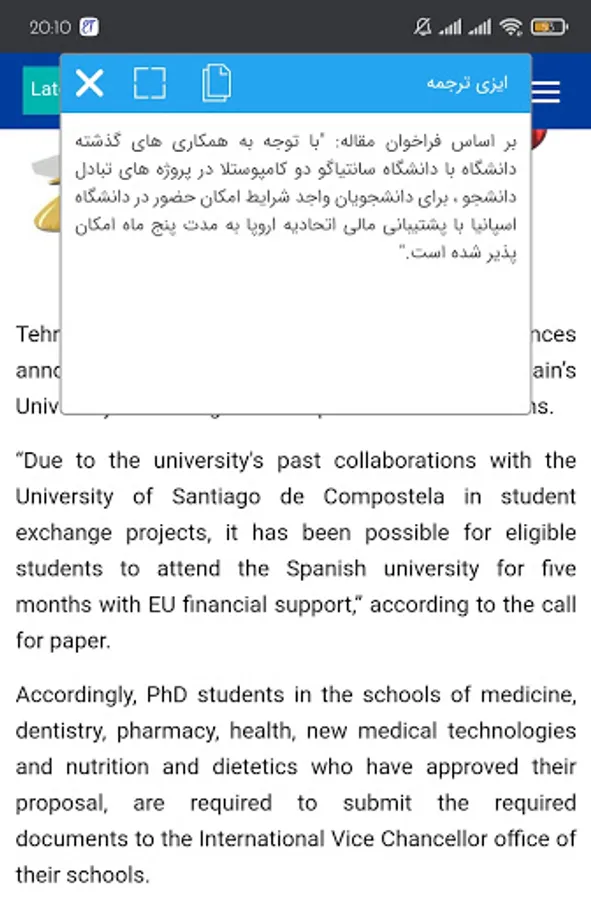 With the copy translation service, translate your copied text without opening the software and in any other software! (Depends on Android version)