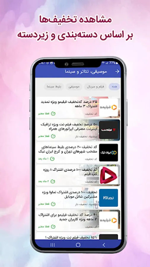 • کد تخفیف سینما تیکت ، فیلیمو ، نماوا ، تیکت ، تیوال و ... جهت تماشای فیلم و سریال و خرید آنلاین بلیط سینما ، تئاتر و کنسرت