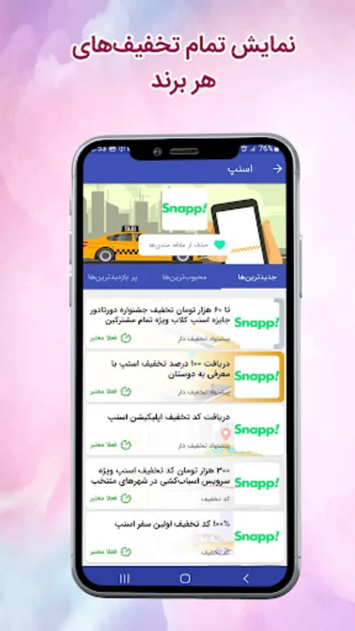 coupon code of online taxis such as Snapp , Tap30 , Maxim and Alopeyk