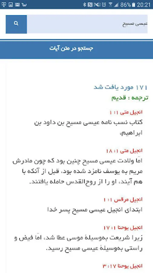 Software good news, for the Bible, including the various translations of the Bible, verse finder (SEO) Farsi, more than half a million cross-references (referenced passages), and parallel verse by verse study of the various translations, interpreting and guide books and maps Holy book.