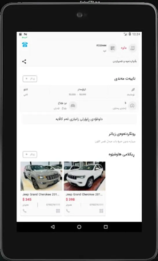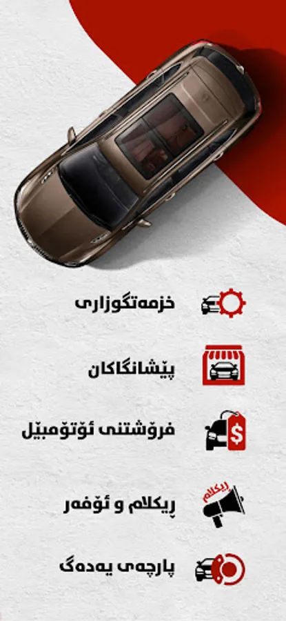 ئهپلیكهیشنهكه به خۆڕایی دهتوانى ئۆتۆمبێل نمایش بكهی بۆ فرۆشتن