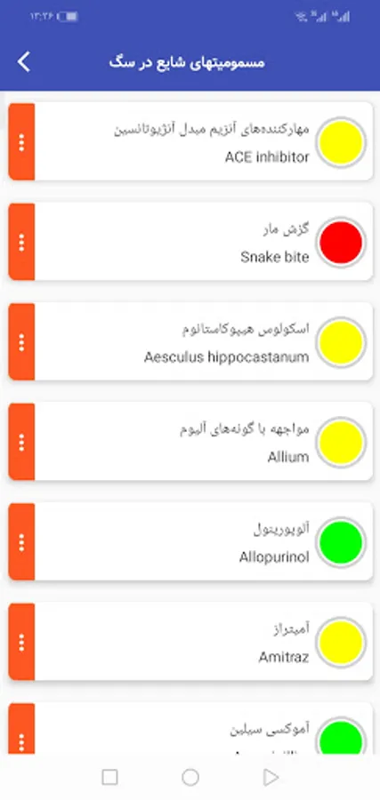 Each toxin has detailed information such as the name of the toxin, common or trade names or plant species names, etc., toxicology, risk factors, clinical effects (time of onset of symptoms, common symptoms and other symptoms) ), Treatment, prognosis