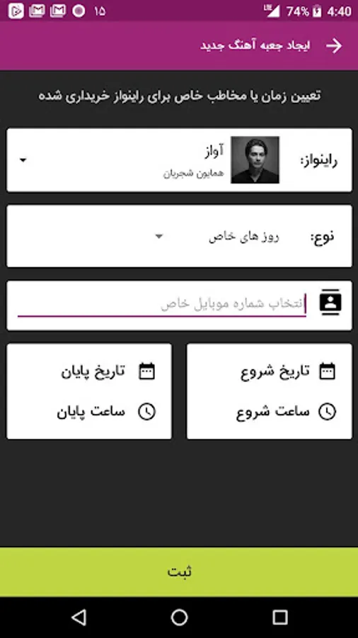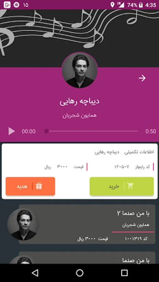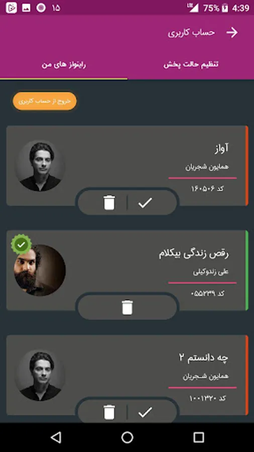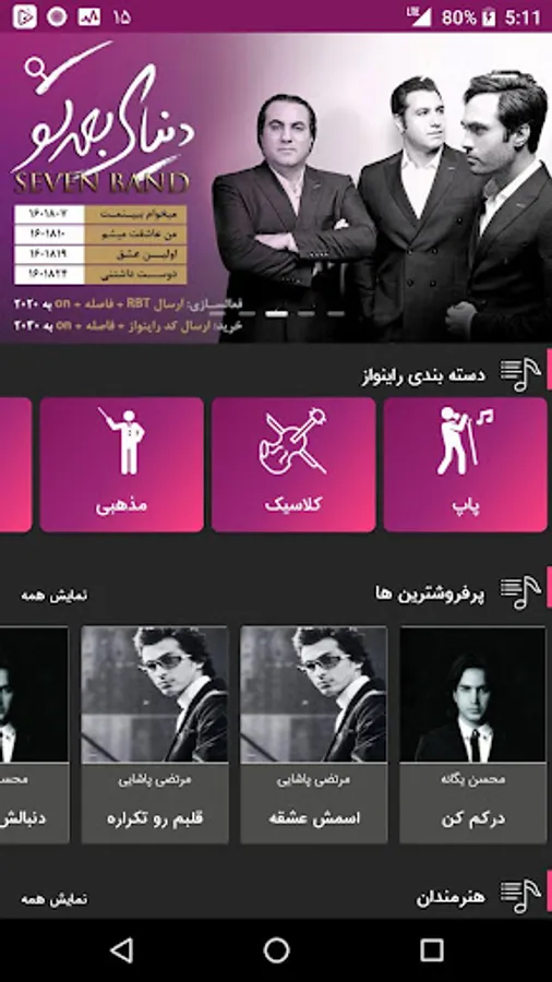 The Rinavaz app is a complete collection of RighTel Rinavaz that has been formally developed and implemented by RighTel Company. With the help of this app, you can access to full archive of RighTel Rinavaz and find your favorite song easily. One of this app features is the ability to search among different styles, play songs and activate them.You can also with using this app, give your favorite Rinavaz gift to your friends.