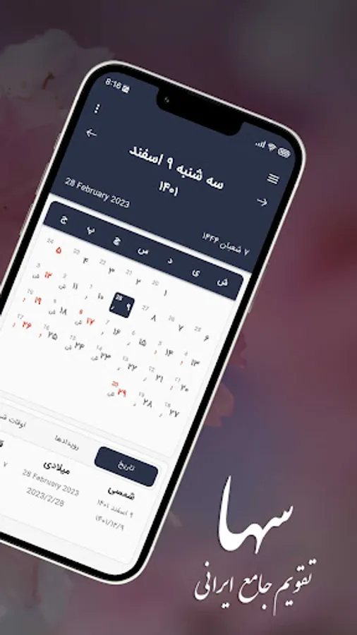 2- Soha's professional calendar in solar, lunar and Gregorian format and without restrictions up to the next and past hundred years.