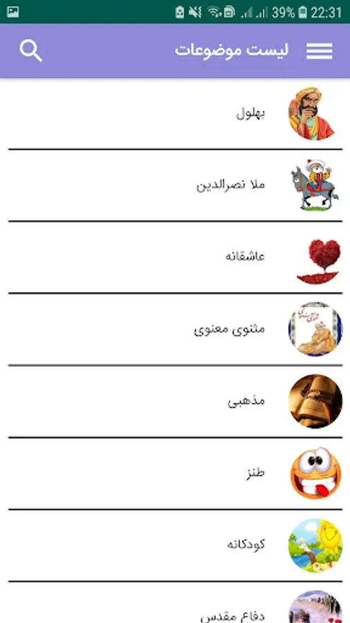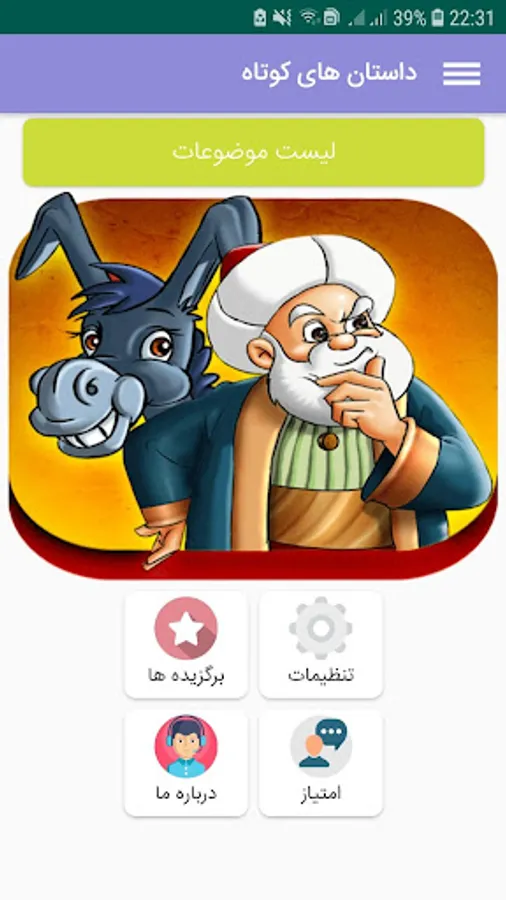 The app contains over 2000 stories in the categories: Behlul, Melanasuddin, Romantic, Mathnawi Spiritual, Religious, Humorous, Childish, Holy Defense and ...
