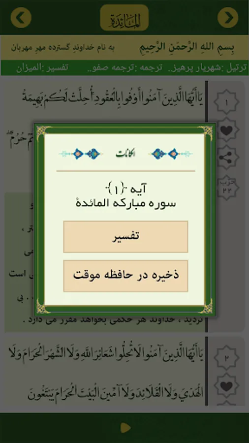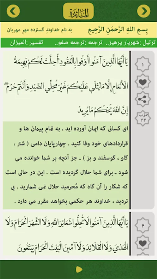 - Ability to share text, translation and interpretation of the verse via SMS and social networks