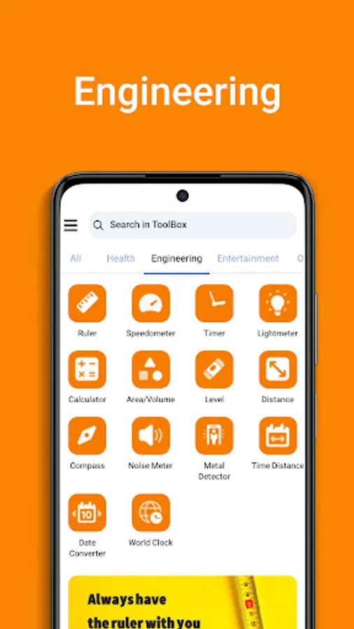 Toolbox contains more than 50 tools, including APK sharing, flashlight, light meter, magnifier, speedometer, timer, heart rate monitor, color detector, ruler, advanced calculator, etc., that you might need on a daily basis.