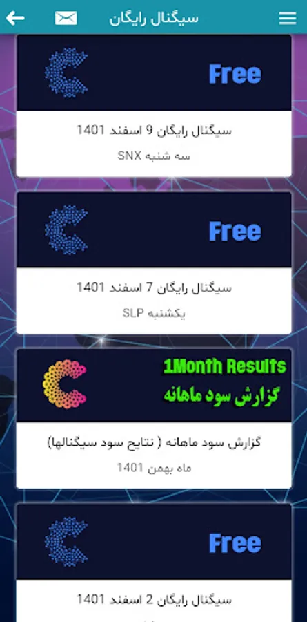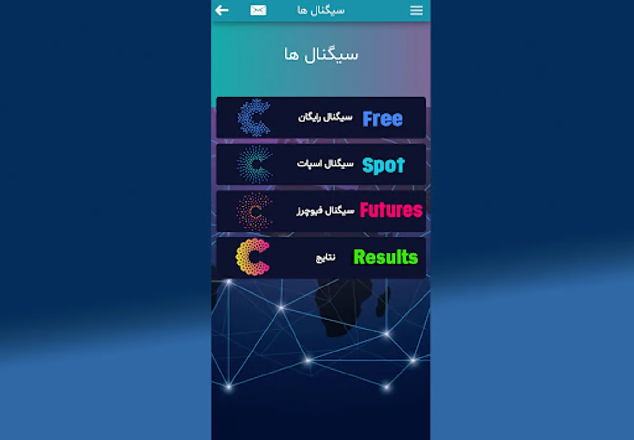 To view the signals, use the signals section, it consists of three sections, the free section, which is free, and the two non-free sections, spot and futures, including the monthly fee, which we have greatly reduced, and activate this section from the user account section of the application and click the upgrade plan button.