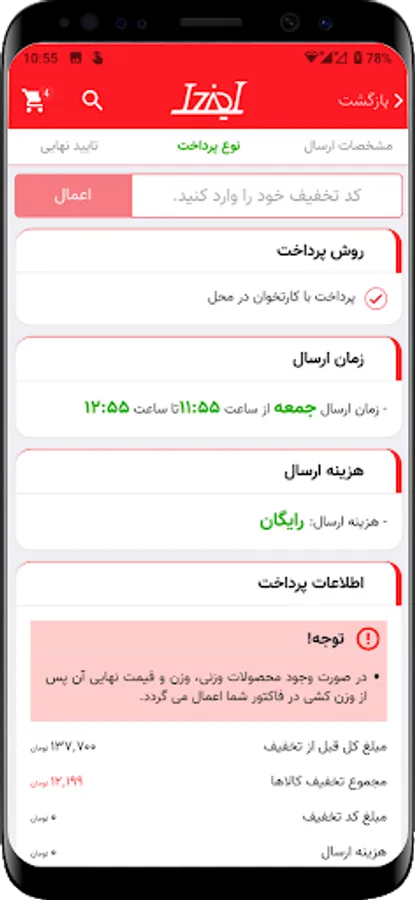 Izadi store was opened in 1340 in the city of Chalous. This store has always tried to satisfy customers, and for this reason, it was in sync with technology from the beginning. This made it possible for you to go from Izadi store to Buy online or in person. With the pervasiveness of electronic services and the growing role of technology in people's daily lives, the store decided to offer its services to customers more widely and faster. Therefore, by using the services of Sika Smart Processing Company, it unveiled its online sales application in the winter of 1398. The application, which is available for both iOS and Android platforms, is currently able to serve all parts of Chalous, Nowshahr and Hatchirud, and in the near future will expand the range of situations covered.