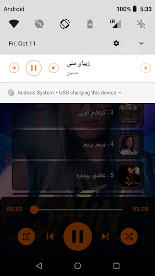 - پخش و کنترل موزیک ها در پس زمینه و حتی در حالت قفل گوشی!