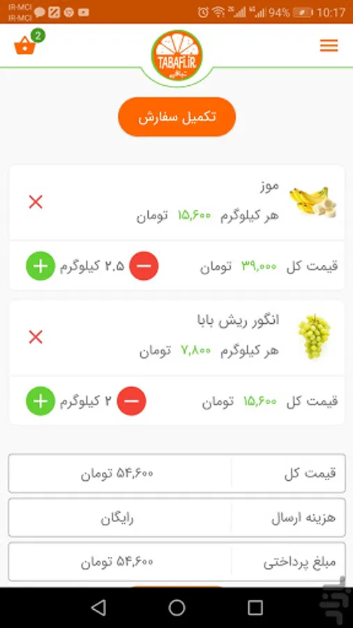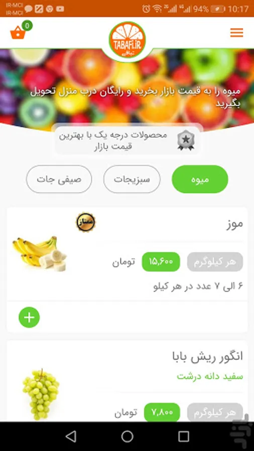 Using Tabafi software, you can buy the fruits and vegetables you need for your home at the market price in a few hours and receive them at your doorstep with a free shipping cost (for purchases over 50,000 Tomans).