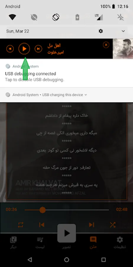 - پخش و کنترل موزیک ها در پس زمینه و حتی در حالت قفل گوشی!