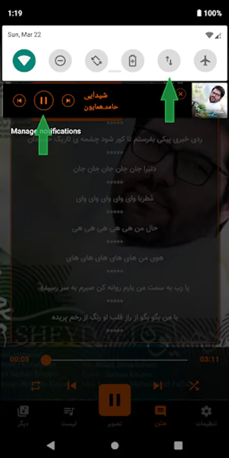 - پخش و کنترل موزیک ها در پس زمینه و حتی در حالت قفل گوشی!