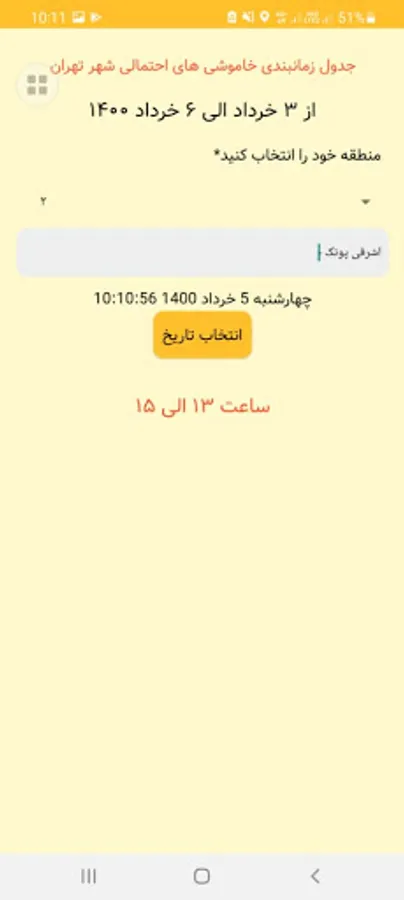 برق رفت اپلیکیشنی برای مشاهده زمانبدنی قطعی برق در تهران بر اساس دیتابیس اداره برق