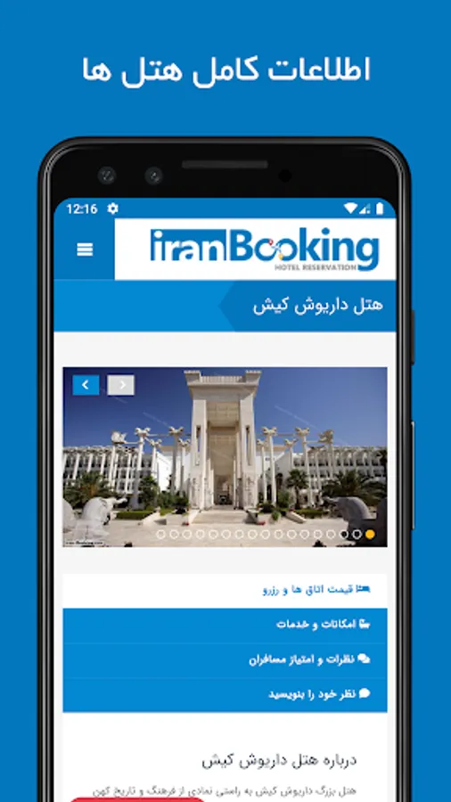 In this site, you can book Iranian hotels online with special discounts, sometimes up to 50% of the original hotel price.