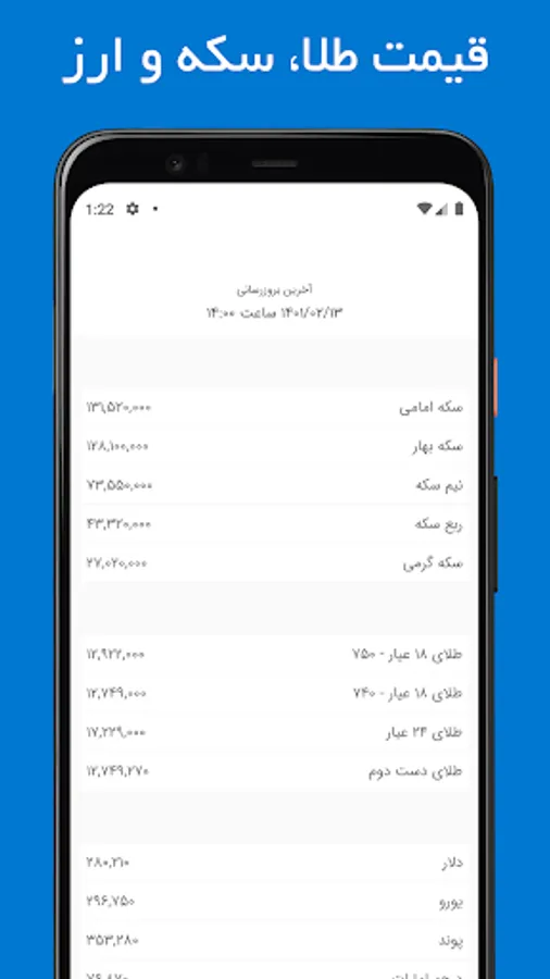 Display the price of coins, gold and currency, an up-to-date exchange board on your phone