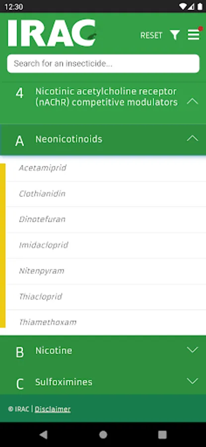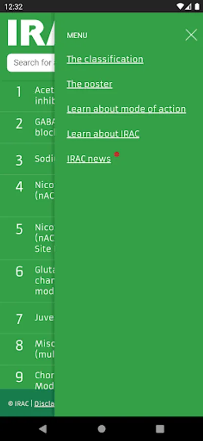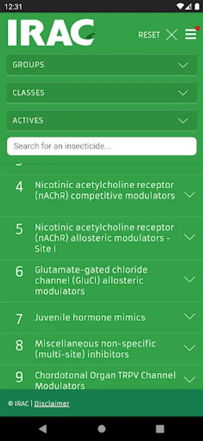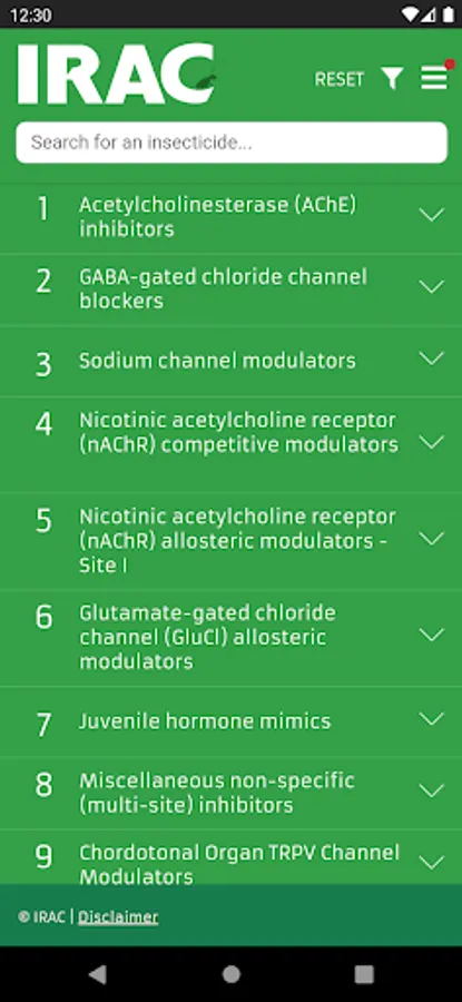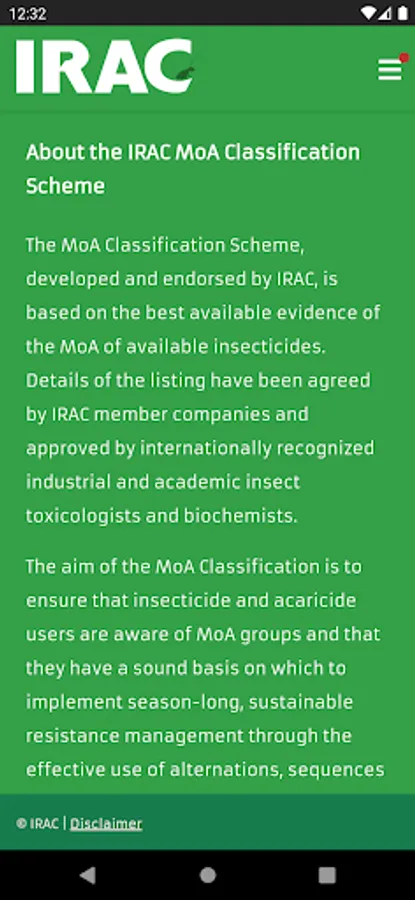 The IRAC Insecticide Mode of Action (MoA) Classification for your mobile device is an easy to use searchable database which allows you to identify insecticide active ingredients and their respective MoA groups without the need for a data connection.