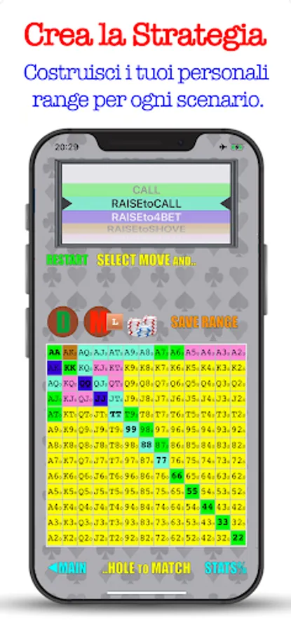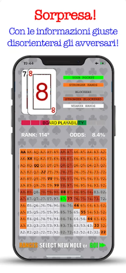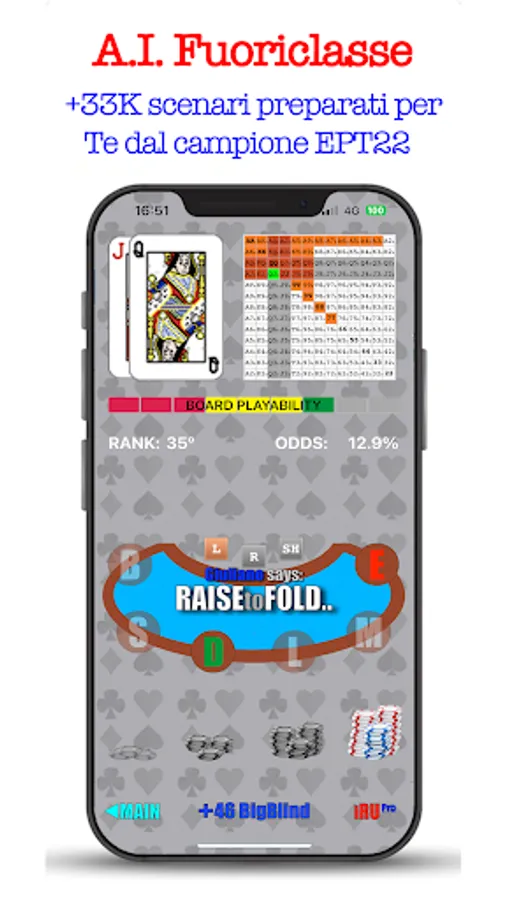 That's not all, G.BENDINELLI has also trained the artificial intelligence, available in the Training section dedicated to preFlop openings, providing over 33,000 scenarios in which you will learn IF, HOW, and from WHICH POSITION to enter a hand correctly according to the criterion of a champion , to build you an exclusive strategy to lower the variance and show up on the Flop with excellent odds of winning the Pot.