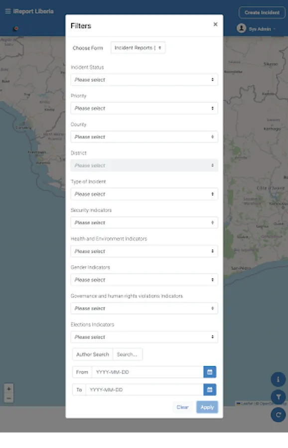 Mobile app for the iReport Liberia platform
