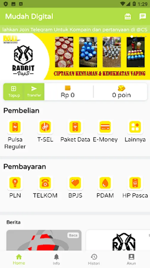 Credit Sales Applications, PPOB, Game Vouchers, GOJEK, GRAB, MAXIM, E-MONEY, and others, the advantage is that you can top up your balance through ALFAMART Partners