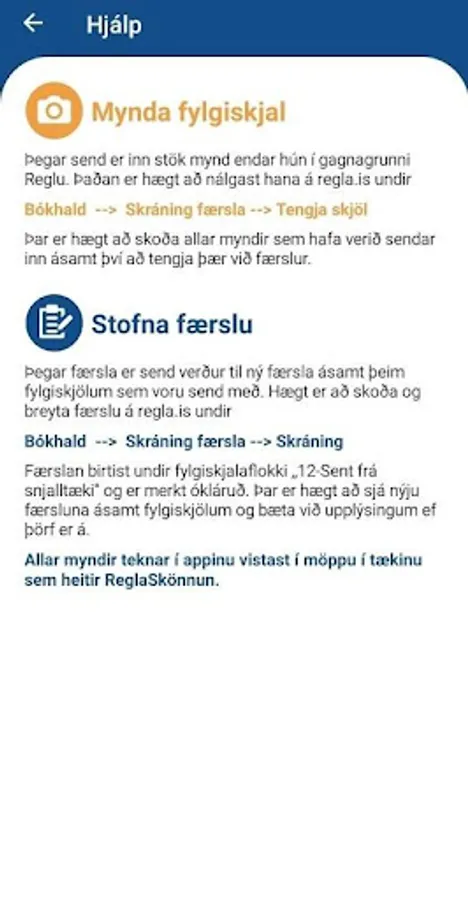 You can scan attachments with you mobile and in a simple way send them into Regla's system. Additionally you can create transactions along with their attachments. When that is done a new transaction is created, the attachment is added and the transaction can be viewed on regla.is
