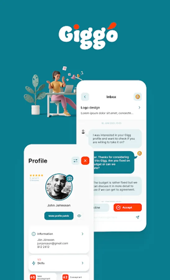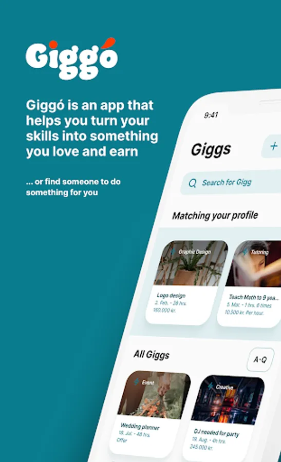 Giggó is your app for temporary work, whether you're looking for a helping hand or some extra income. You can post ads for a gig (a short-term job) or offer your service as a gigster (freelancer).
