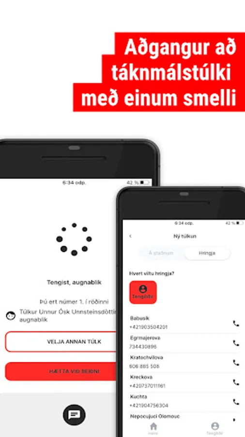 SHH Videophone interpretation makes it easier for speakers of Icelandic sign language to communicate when they need to talk to the authorities, the bank, an employer or other institutions. The need to get a sign language interpreter instead is effectively replaced by the option of connecting to an interpreter via video call. Users can use the service to communicate over the phone or for simple on-the-spot interactions in everyday life.