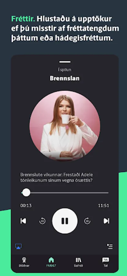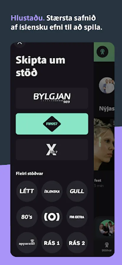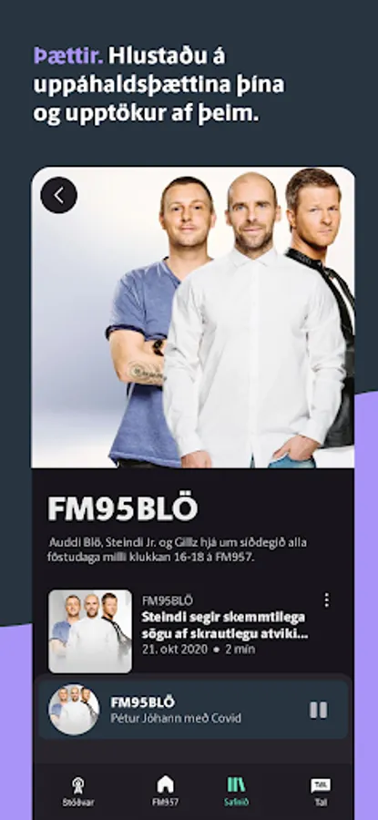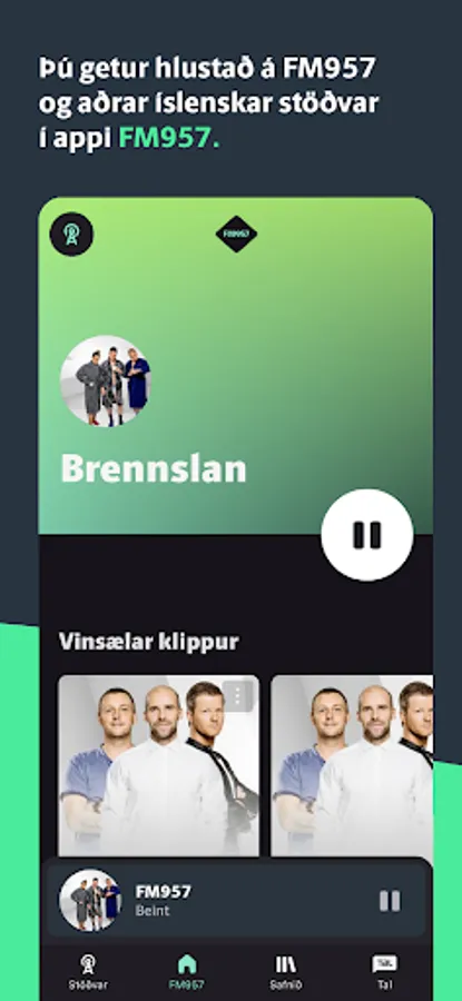 Þú getur hlustað á FM957, Tal hlaðvarp og aðrar íslenskar stöðvar í appi FM957.