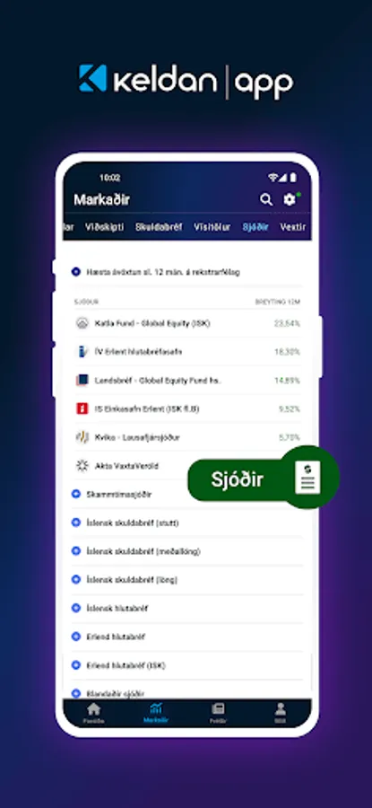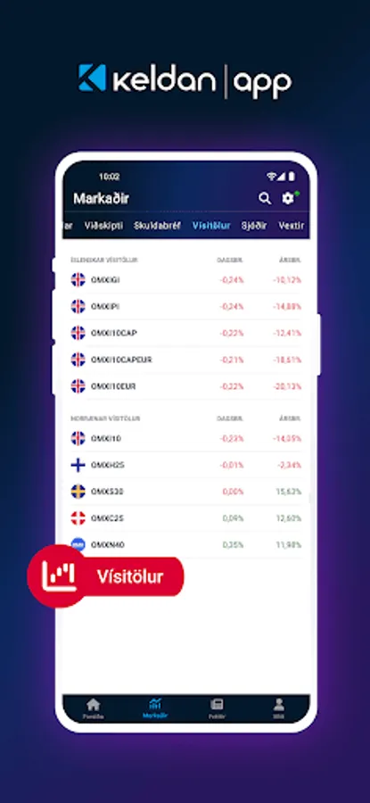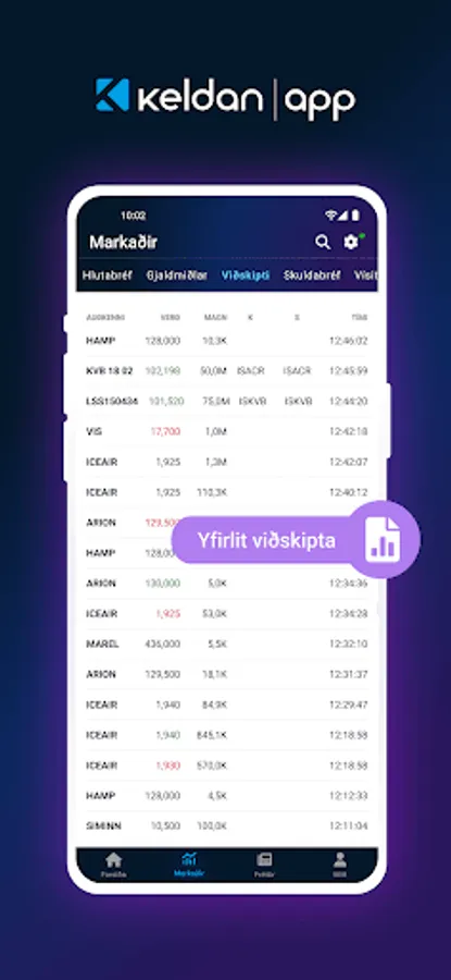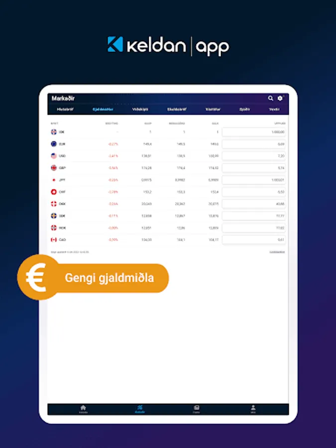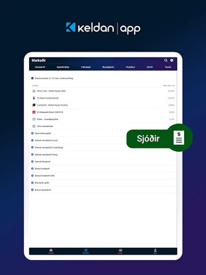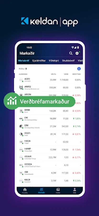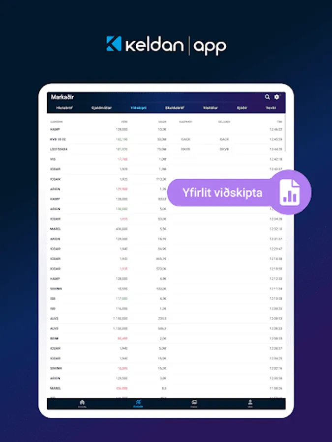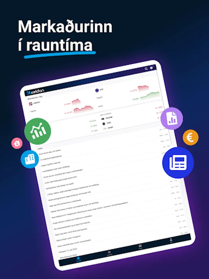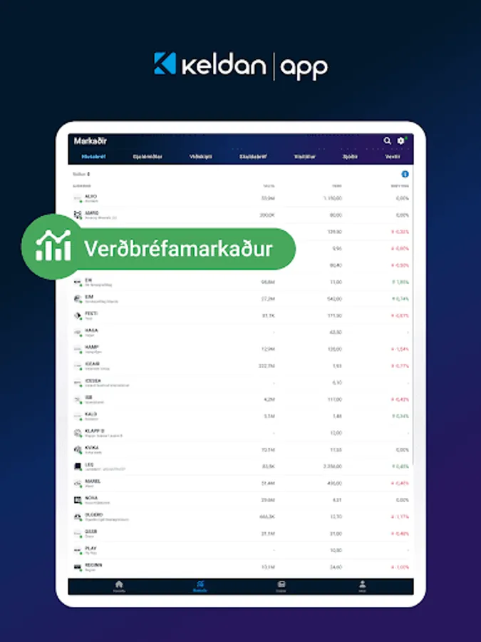 Allar viðskipafréttir á einum stað. Með Keldu appinu færðu gott yfirlit yfir gengi hlutabréfa, skuldabréfa, sjóða og gjaldmiðla.