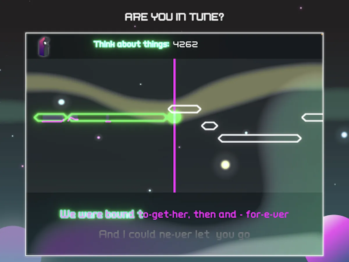 In the app, the player can play an arcade game with each song and sing the song in a karaoke version by using voice recognition and lets the user know if you are hitting the right tone.