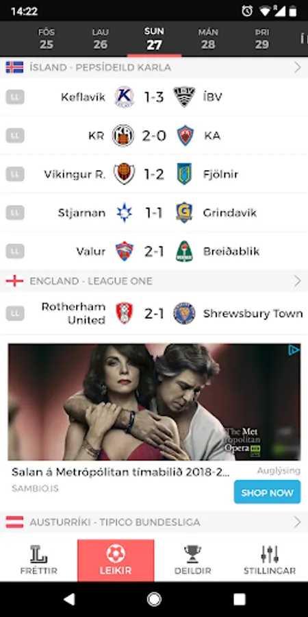 • Úrslit og dagskrá leikja úr öllum helstu deildum