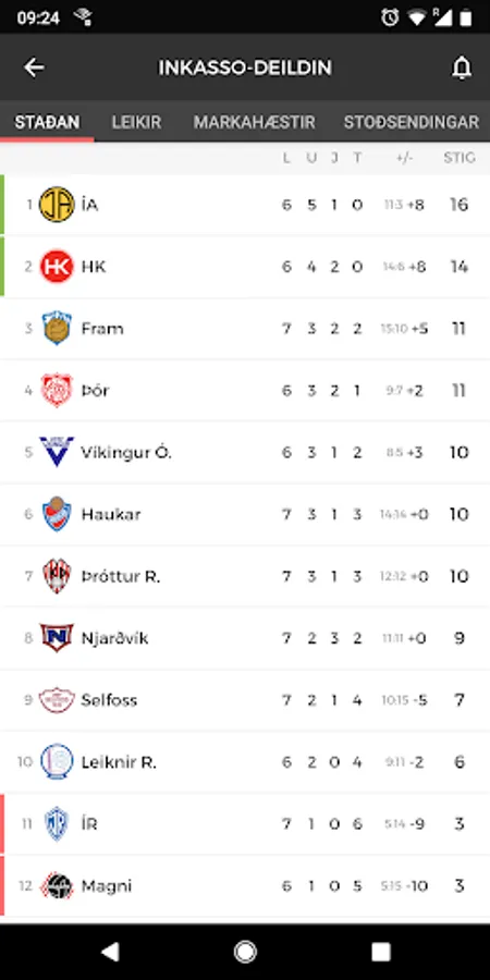 • Staðan í öllum deildum - Lifandi staða þegar leikir eru í gangi