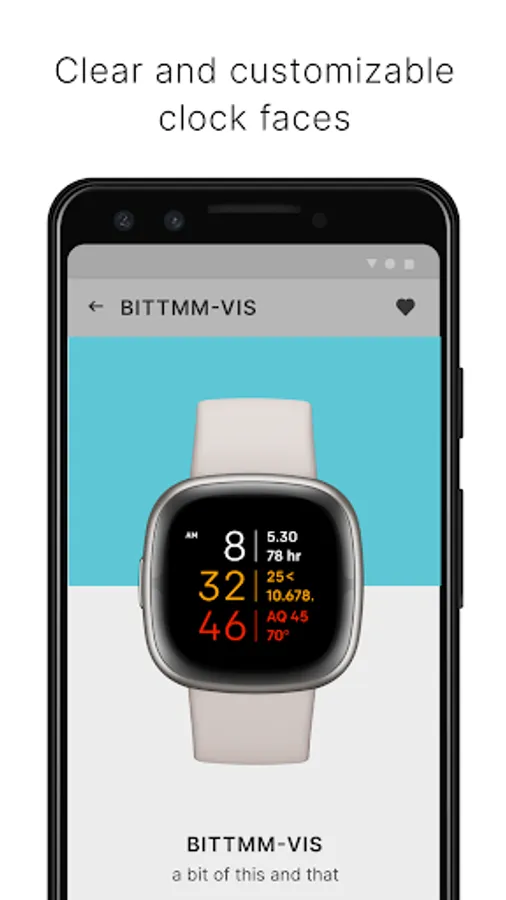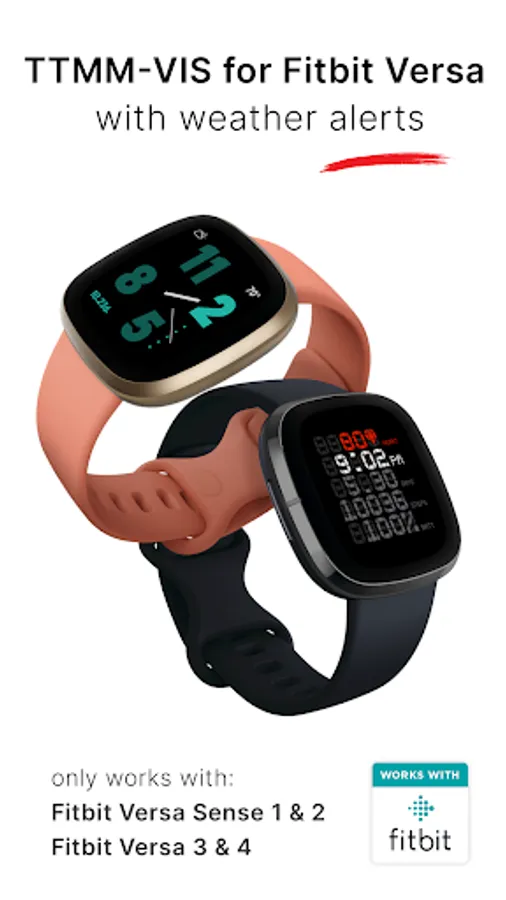 TTMM-VIS app is an awarded collection of TTMM watch faces, equipped with air pollution alerts, dedicated to Fitbit Versa 3, Versa 4, and Fitbit Versa Sense and Sense 2 smartwatches.