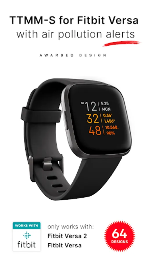 TTMM-S app is an awarded collection of TTMM watch faces, equipped with air pollution alerts, dedicated to Fitbit Versa 1 and 2 smartwatches.