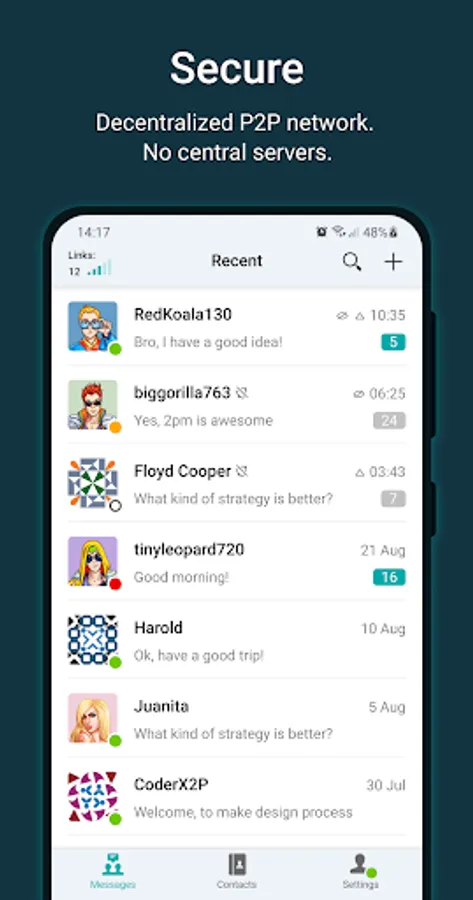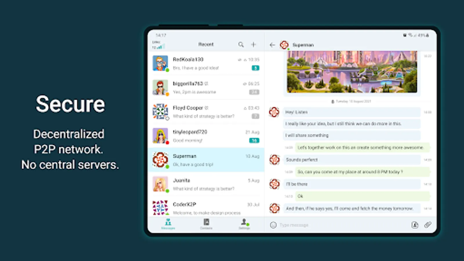 Utopia is a breakthrough decentralized and private P2P messenger with no central server involved in data transmission or storage.