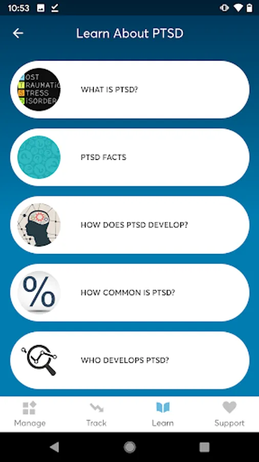 PTSD Coach was designed for Veterans and military Servicemembers who have, or may have, Posttraumatic Stress Disorder (PTSD). This app provides users with education about PTSD, information about professional care, a self-assessment for PTSD, opportunities to find support, and tools that can help users manage the stresses of daily life with PTSD. Tools range from relaxation skills and positive self-talk to anger management and other common self-help strategies. Users can customize tools based on their preferences and can integrate their own contacts, photos, and music. This app can be used by people who are in treatment as well as those who are not.