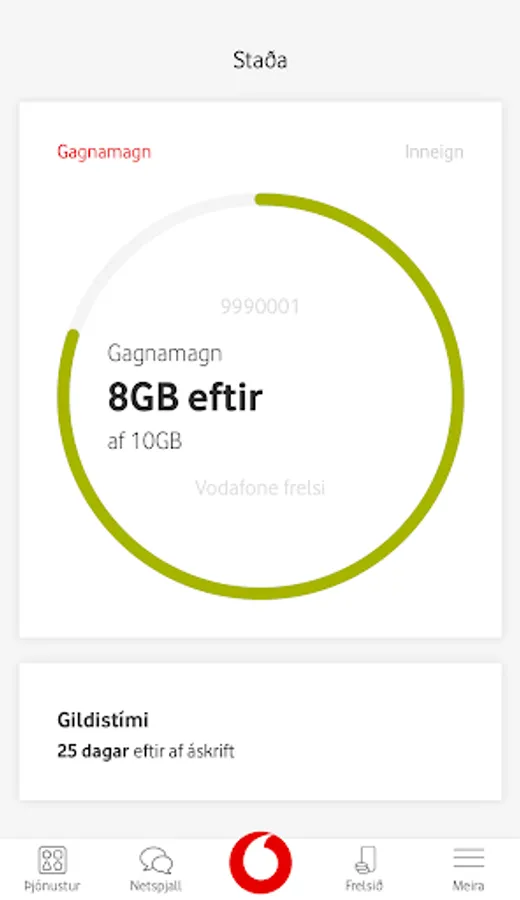 - Fylgst með stöðu á farsímanúmerinu þínu; gagnamagni, mínútum og SMS