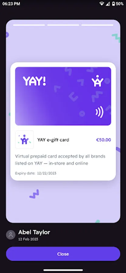 In the YAY moments app you can buy and send e-gift cards. You can personalize your gift card with gift wrapping, a message and send a video or photo greeting with your gift. The receiver can then immediately use the gift card with all cooperating retailers.