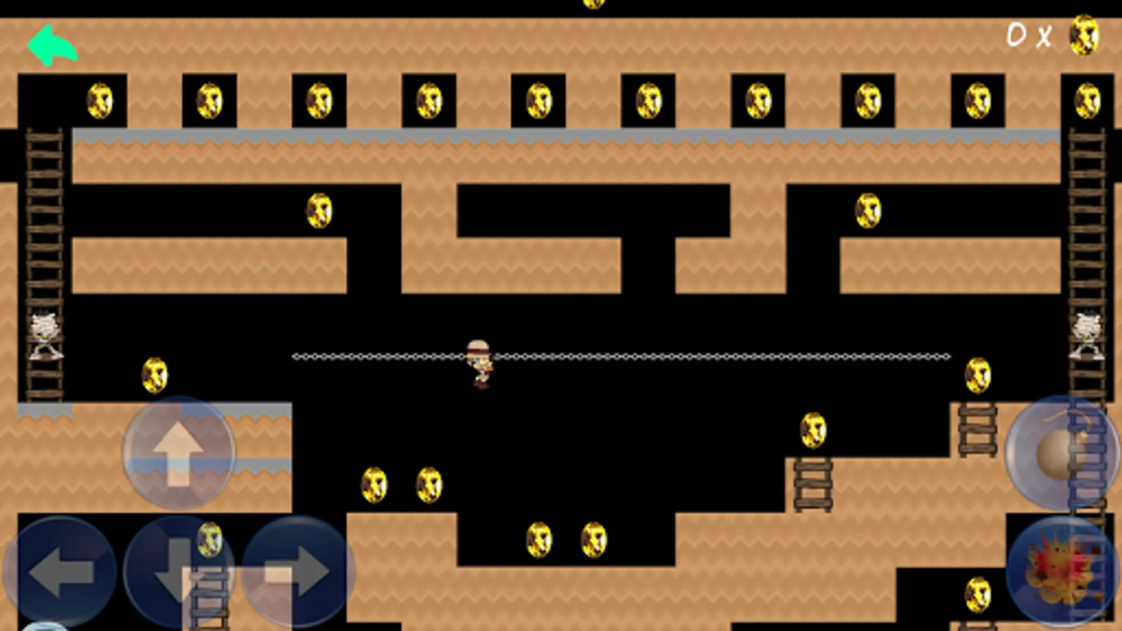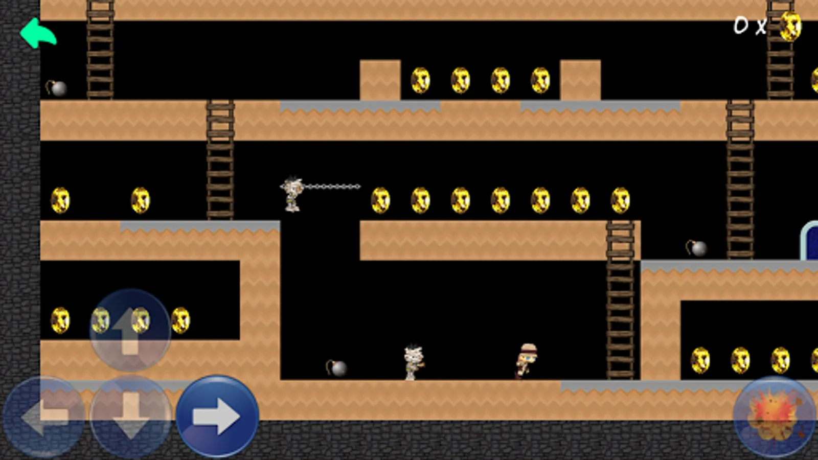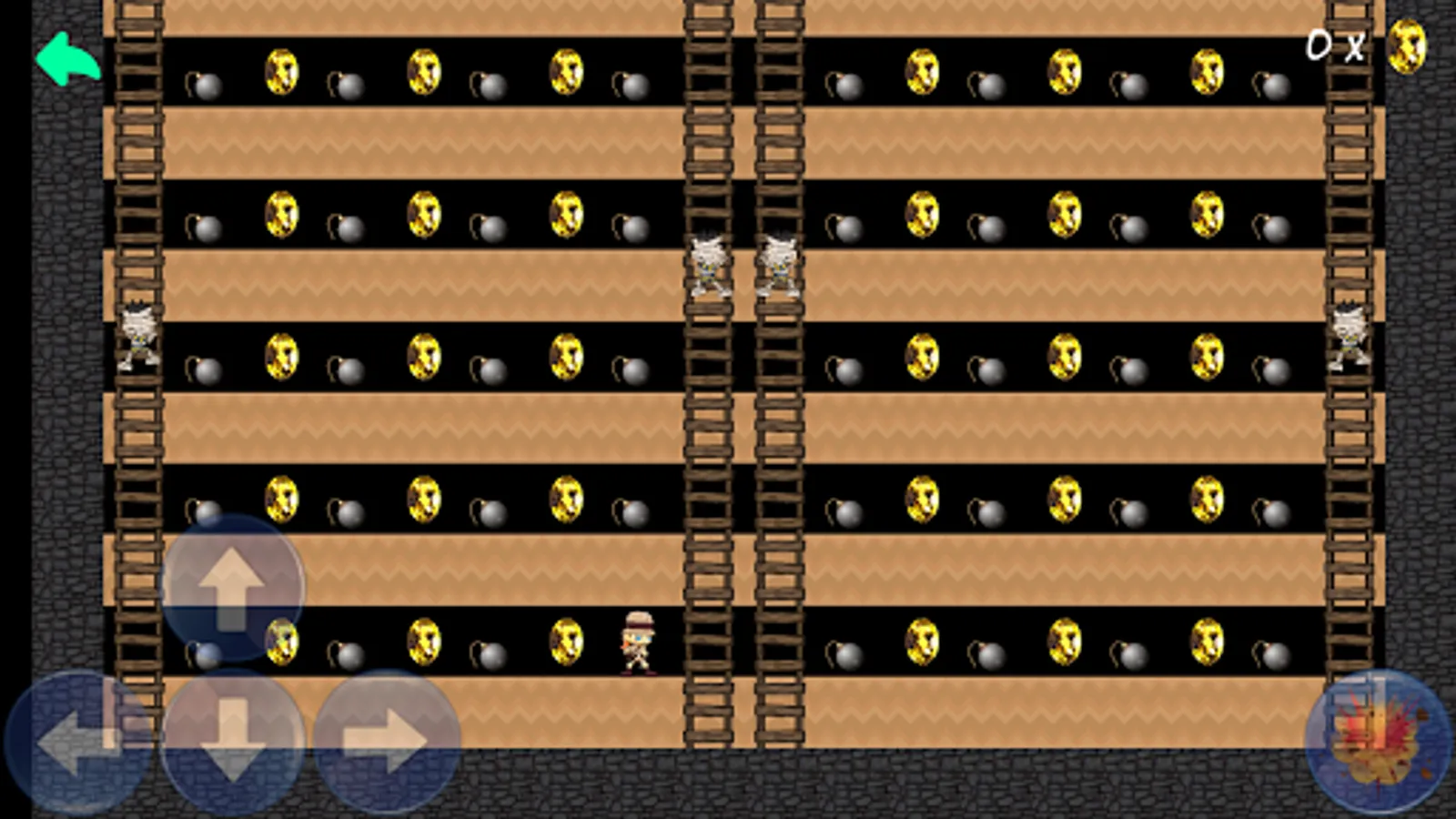Collect all the gold in a level while avoiding the mummies that try to catch you.
