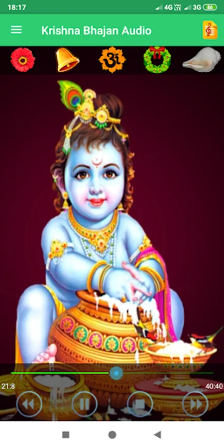 Krishna Bhajan Audio with a clean sound to all devotee and with a lot of features as