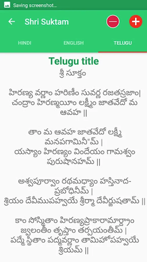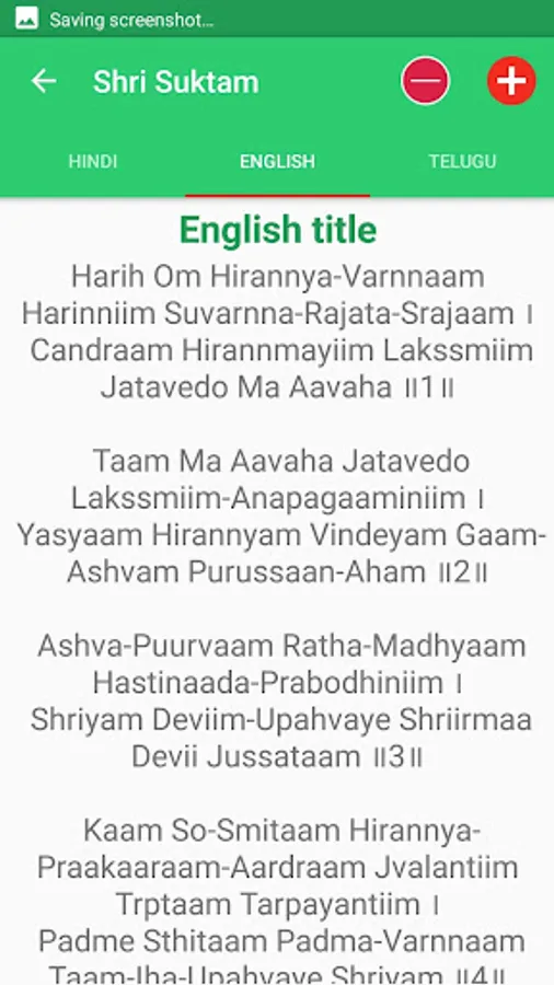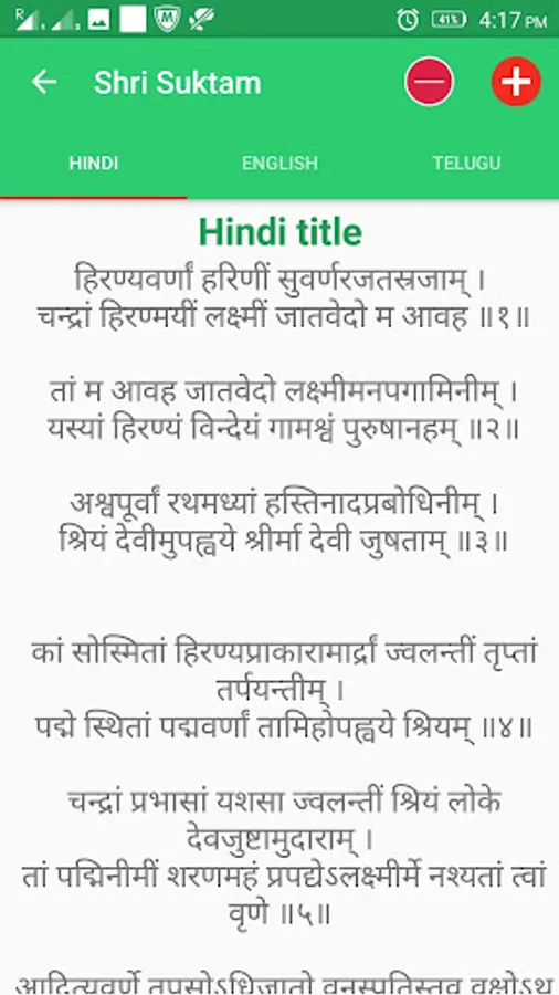 Shri Suktam with lyrics in Hindi,English and Telugu as well as full audio and a lots of features.