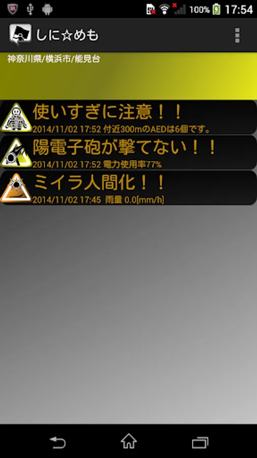 (例)現在地の天気から、あなたの安全を脅かすであろう死亡フラグを通知します。