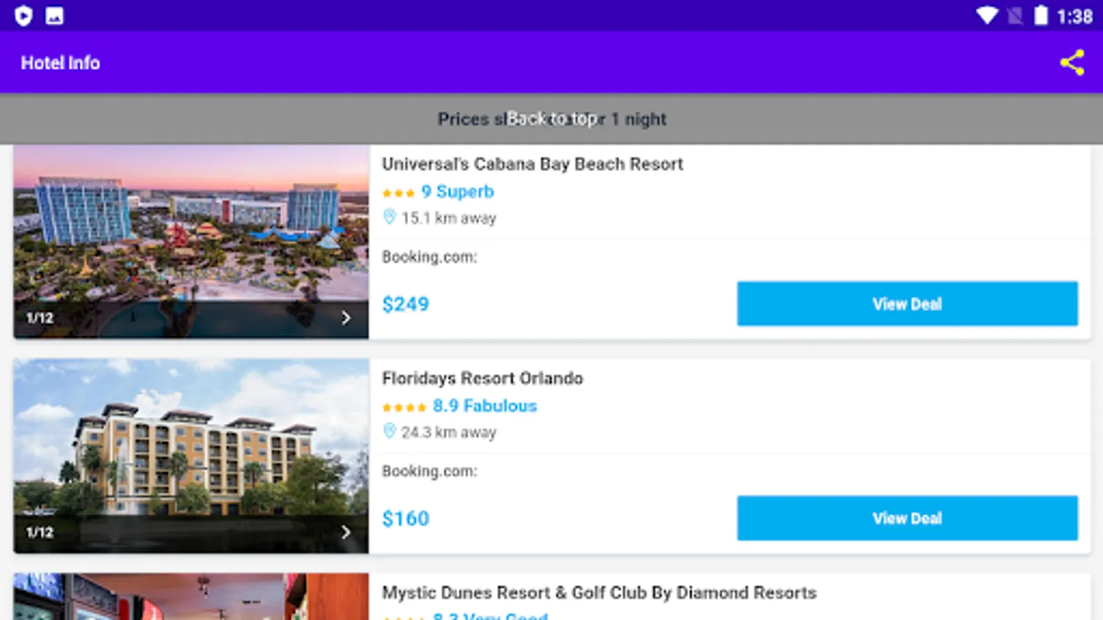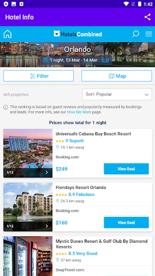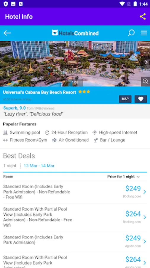 The Hotel Info application allows you to simplify your hotel reservation, find information and navigate filters like location, hotel deals, cheap hotels, 5 star hotels and more. You can reserve hotels and apartments daily.