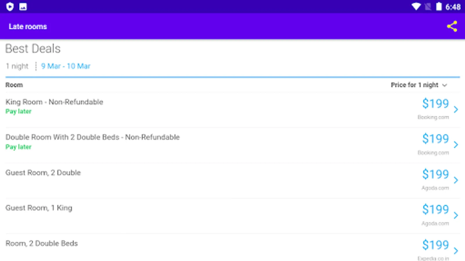 Compare and book excellent hotels with our late room application, up to 80% off hotel deals. We have cheap hotels, late rooms, cheap motels, luxury hotels, hostels, guest houses and affordable hotel rooms from more than 620,000 hotels worldwide. We offer a big discount on hotel and late booking reservations.