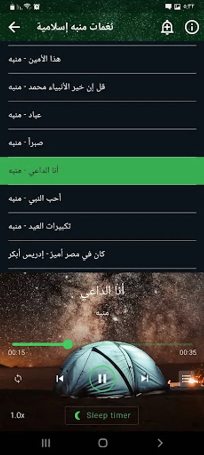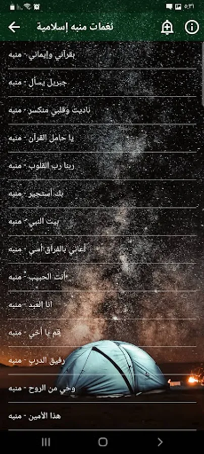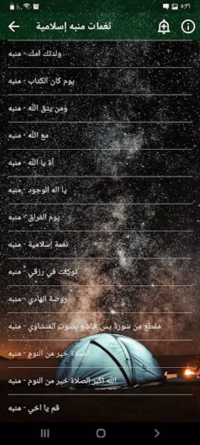 The application contains a large number of Islamic songs and religious tones that make you wake up easily, and also that collects a number of the freshest sounds of the most famous singers and readers.