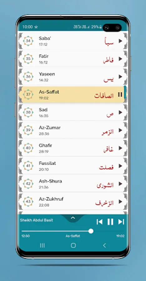 Every Surah will be played back to back automatically. Don't need to tab again and again on every Surah.