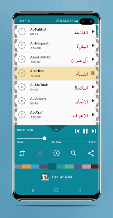 Listen Quran offline without any internet connection. Just open the Quran and tap any surah to play in high quality.
